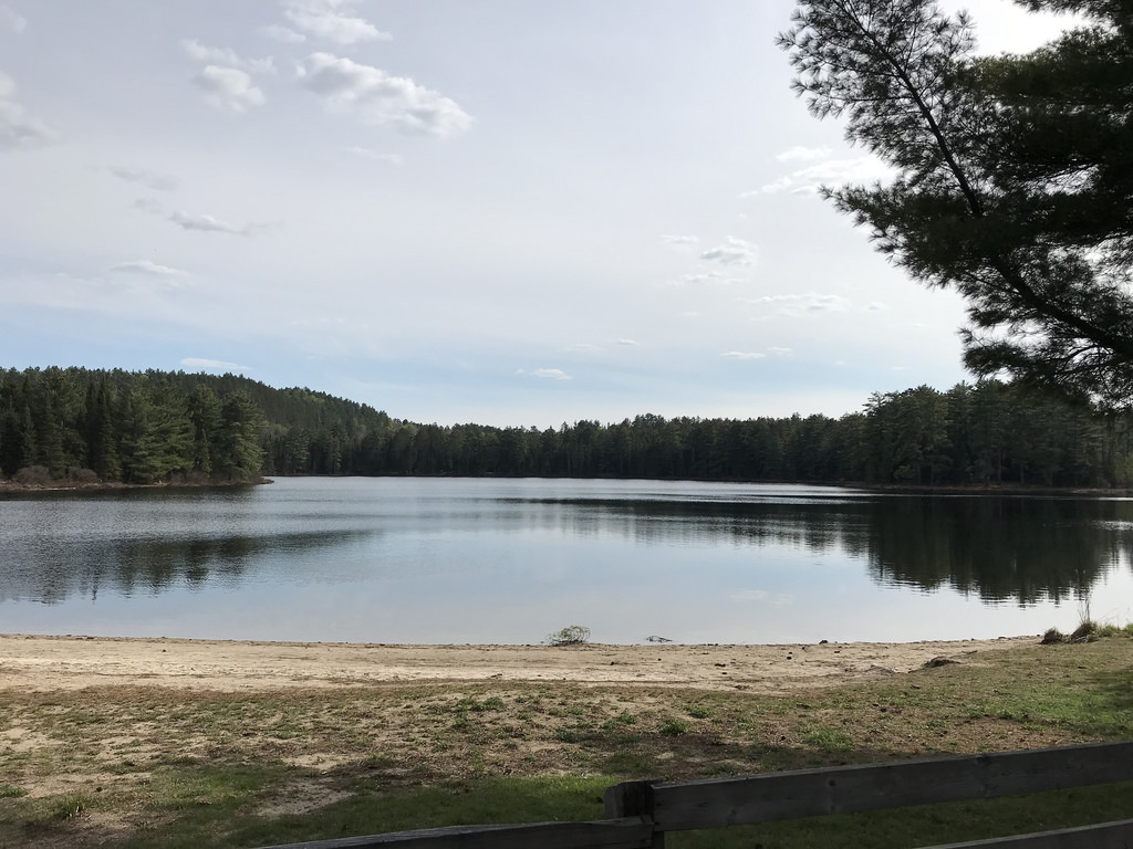 Die Einfahrt zum Mew Lake Campground im Algonquin Provincial Park führt uns erst einmal zu einer kleinen Hütte. Dort befindet sich die Anmeldung, welche mit einer sehr freundlichen und hilfsbereiten Mitarbeiterin besetzt ist. Sie erklärt uns das System und markiert auf einem Plan, welche Plätze noch frei sind. Im Anschluss machen wir uns dann erst einmal (mit dem Wohnmobil) auf den Weg und starten eine kleine Erkundungstour über den Campingplatz, um uns ein passendes Plätzen auszusuchen. Schnell werden wir fündig – na ja, eigentlich hätten wir jeden Platz genommen, denn alle sind sehr großzügig ausgelegt und hübsch gelegen. Letztendlich haben wir uns für einen Platz in zweiter Reihe zum See ausgesucht und mit dieser Wahl ging es dann für uns wieder den Berg hinauf zur Anmeldung. Jetzt noch etwas Papierkram erledigen, das Feuerholz und den Anzünder nicht vergessen, und dann wieder runter auf unseren Campingplatz.