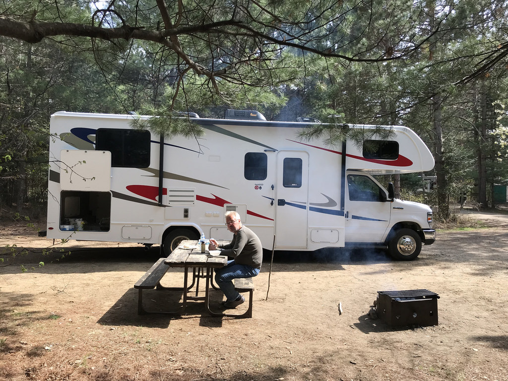 Der Mew Lake Campground verfügt nicht über eine eigene Dump Station – weder zentral noch an den einzelnen Plätzen. Dies scheint auf allen Plätzen im Algonquin Provincial Park der Fall zu sein. Es gibt eine zentrale Stelle, die sich ca. 6,7 km östlich vom Campingplatz entfernt befindet – mehr haben wir jedenfalls nicht gefunden. Wir haben ca. 30 Minuten benötigt, bis wir an der Reihe waren unseren Toiletteninhalt und das Schmutzwasser los zu werden. Als wir dann fertig waren, hatte sich allerdings die Schlange deutlich verlängert. Es dürfte locker bis zu 1 Stunde dauern, bis auch diese Leute an die Reihe kommen.