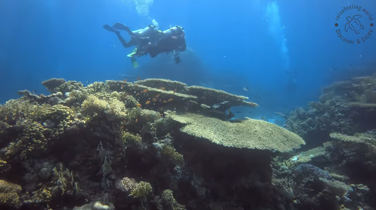 Nach etwas mehr als einer Stunde Bootsfahrt haben wir unseren Ankerplatz am Tauchspot Careless Reef erreicht. Die Wasseroberfläche ist fast spiegelglatt und glitzerte türkisblau. Nach dem Briefing haben wir unsere Ausrüstung angelegt und dann kam der Moment: ein großer Schritt vom Boot ins Blau, das typische „Platsch“, der erste Blick nach unten – und sofort dieses Gefühl von Freiheit.