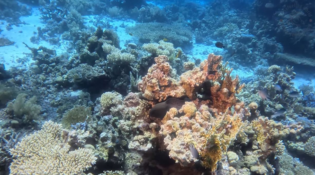 Wir haben den Tauchgang gegen die Strömung begonnen und versucht immer mal wieder die Stellen zu finden, an denen die Strömung nicht ganz so stark war. Nachdem wir zwischen den beiden Blöcken raus waren und uns mehr an der westlichen Seite aufgehalten haben, lies die Strömung auch merklich nach. Ab hier hieß es dann leicht treiben lassen, um die unglaubliche Vielfalt zu genießen. Leider ist uns kein Weißspitzen-Riffhai begegnet, was zu dieser Zeit am Carless Reef wohl häufiger der Fall ist, aber wir haben Moränen, fantastische Korallen und viele andere Fische gesehen.