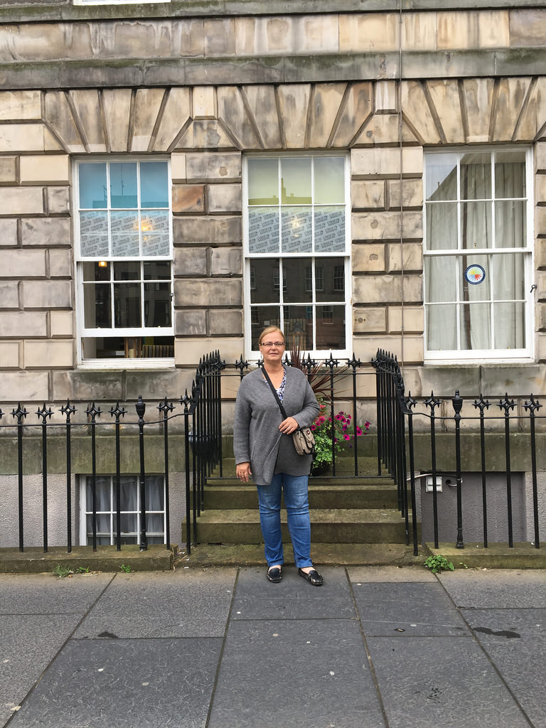 Am nächsten Morgen begrüßte uns Edinburgh mit bedecktem Himmel und etwas Nieselregen. Die Temeratur war aber – für Edinburgh – immer noch sehr angenehm. Wir sind vom Hotel dann gestartet, um an die Orte zurück zu kehren, die Hala zuletzt vor 27 Jahren gesehen hatte. Erst einmal ging es mit dem Bus vom Hotel zur Princes Street. Und dann zu ihren alten Zuhause in die Hill Street.
