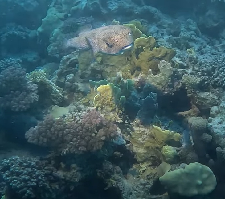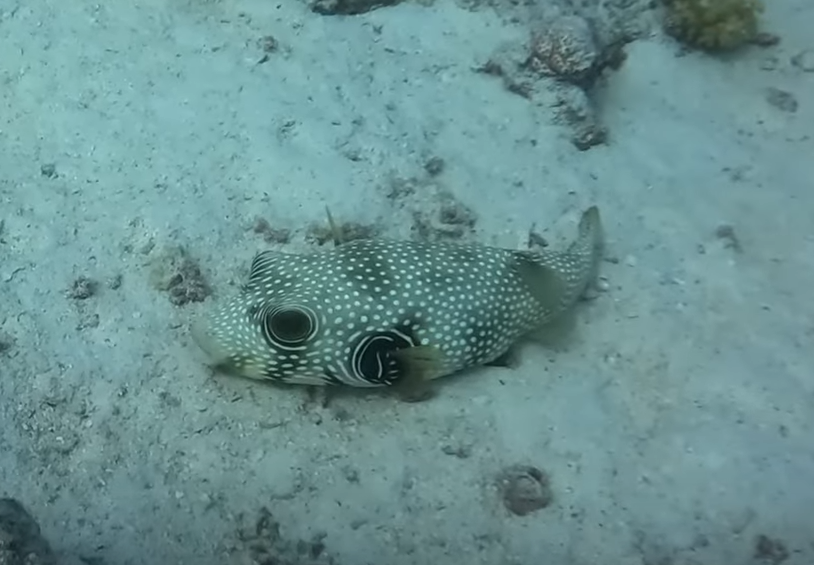 Auf unserem Rückweg zum Boot treffen wir auf mehrere Kugelfische, die so überhaupt keine Berührungsängste mit uns Tauchern zu haben scheinen. Sie tanzen um uns herum, zeigen sich von allen Seiten und gucken uns aus ihren großen Augen an. Irgendwie wirken sie wie niedliche kleine Hundewelpen, die ihren Spaß haben.