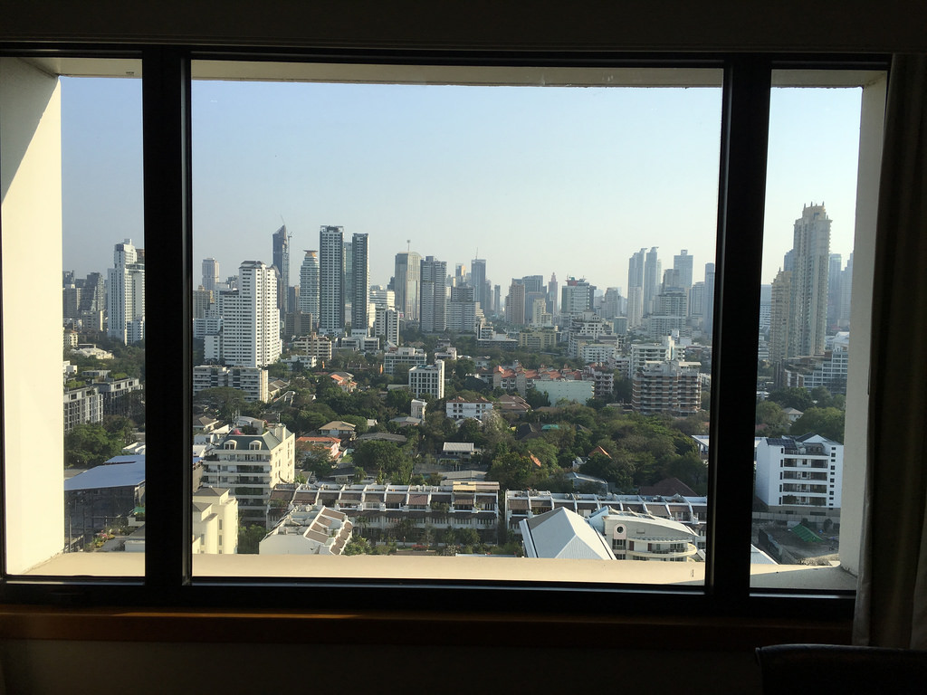 Wie schon geschrieben lag unser Zimmer auf der 21. Etage. Von unserem Fenster aus hatten wir einen herrlichen Blick auf die Skyline. Als wir das Zimmer betraten, haben wir dies erst gar nicht realisiert, da die Vorhänge zugezogen waren. Klar sieht das auf den ersten Blick gepflegter aus, aber der tolle Ausblick ist doch viel schöner, als einfarbiger Stoff vor dem Fenster.