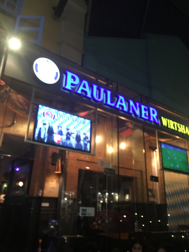 Da wir vom Tag recht aufgekratzt waren und noch nicht schlafen gehen wollten, haben wir noch einen Spaziergang zum Clarke Quay gemacht. Dort sind wir ins Paulaner Wirtshaus gegangen, da es hier nicht so voll war und wir einen schönen Platz draußen gefunden haben. Somit hatten wir die optimale Position das Treiben zu beobachten. Hier haben wir den Tag ausklingen lassen.