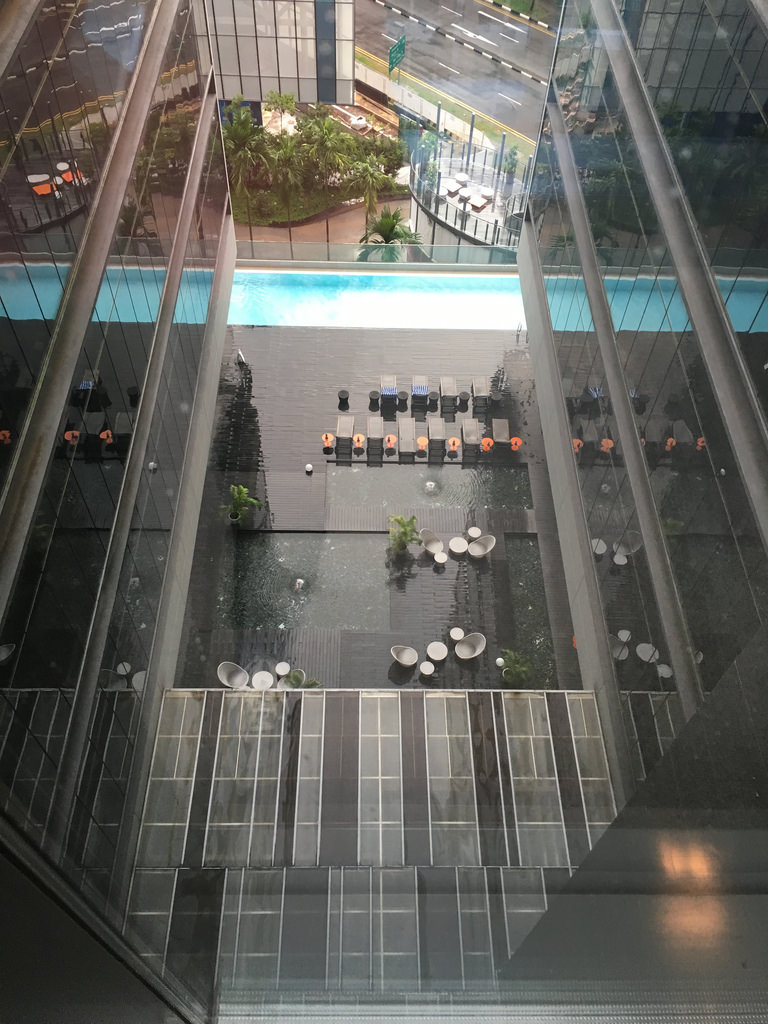 Wie bereits in den vorherigen Hotels haben wir uns den Pool im Studio M Hotel auch nur angeschaut, aber nicht genutzt. Ehrlich gesagt ist mir nach der „Reinlichkeit“ der Zimmer auch die Lust darauf vergangen. Aber schön anzusehen ist der Pool auf jeden Fall. Und wir sehen ihn während unserers Aufenthalts häufiger, denn der Raucherplatz befindet sich – wie der Pool – auf der 2. Etage des Hotels im Außenbereich.